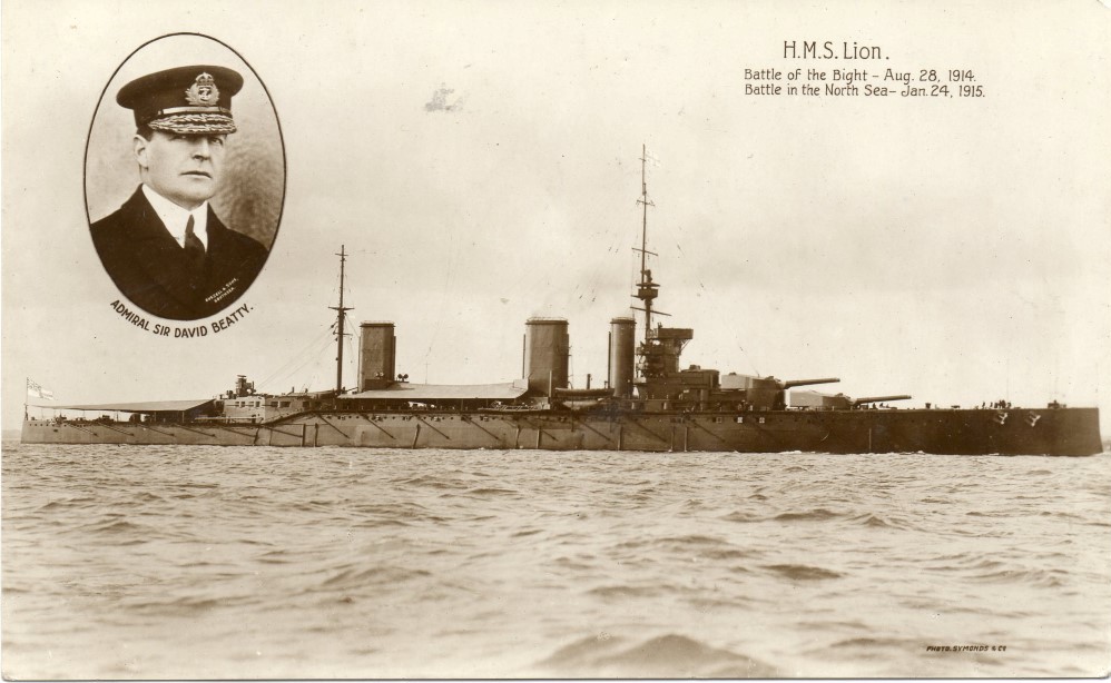 January 1915. Dogger Bank. Our battle-cruisers intercepted three German battle-cruisers and the heavy armoured cruiser Blücher. The enemy made off at high speed and in the ensuing running fight the Blücher was sunk and the Seydlitzbadly damaged, as was Beatty’s flagship Lion.
