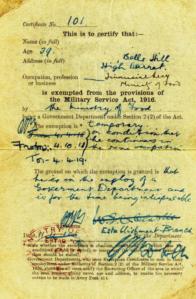 The occupations of people who applied in Queensferry and Dalmeny, were varied; a stationer, master butcher, dairyman, hotel manager, farmers, and police constables. The police were usually given exemption and some other jobs were certified occupations (considered essential for the war effort) which meant that these employees should have been exempted but often were not.