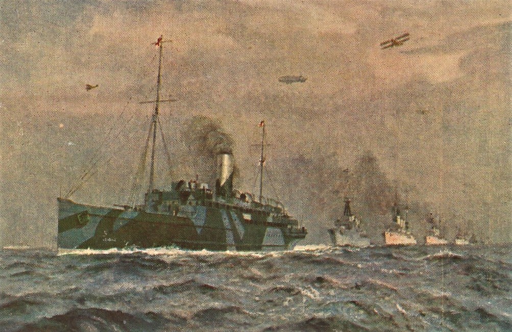 Having confirmed that these “suspicious vessels” were the expected German ships, HMS Cardiff, a light cruiser flying the flag of Rear Admiral Alexander-Sinclair and a Blue Ensign, turned 180° and led the German warships into the Forth. The required speed was 12 knots, but some of the German ships were unable to maintain this speed, so Cardiff had to reduce it to 10 knots.The German ships had been poorly maintained during their long period in harbour. This postcard from 1917/18 overstates the situation, but it gives some idea of the popular view at the time.