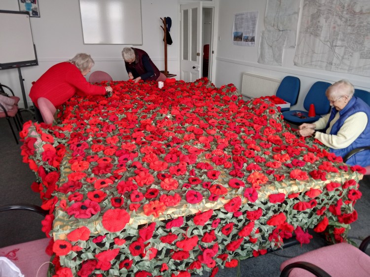 Members of Queensferry History group undertook minor repairs to the Community poppy drape which was created in 2018 by the Group and members of the local Community. This has been used each year since, hanging from the top of the steps at Rosebery Hall for the service. May locals have been spotted having their photo taken standing in front of the drape.