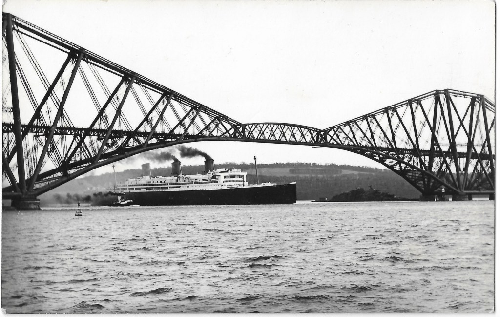 This ship does not look like a warship. From 1914 to 1922 she was SS Bismarck and was the largest ship in the world until 1935. Handed over to Britain in 1922 as part of war reparations she was renamed RMS Majestic and sailed under that name until 1936. She was renamed HMS Caledonia in 1937 and entered service as a training ship at Rosyth. This postcard shows her steaming under the Forth Bridge in April 1937. Not long after the outbreak of war in 1939 she caught fire and burnt out.