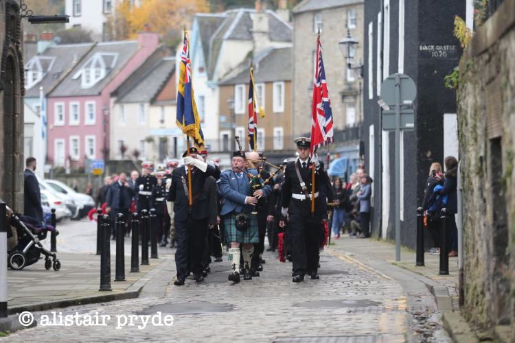 Our wreath, as usual, was bearing a piece of the original Queensferry tartan to commemorate all our Queensferry boys who did not return.