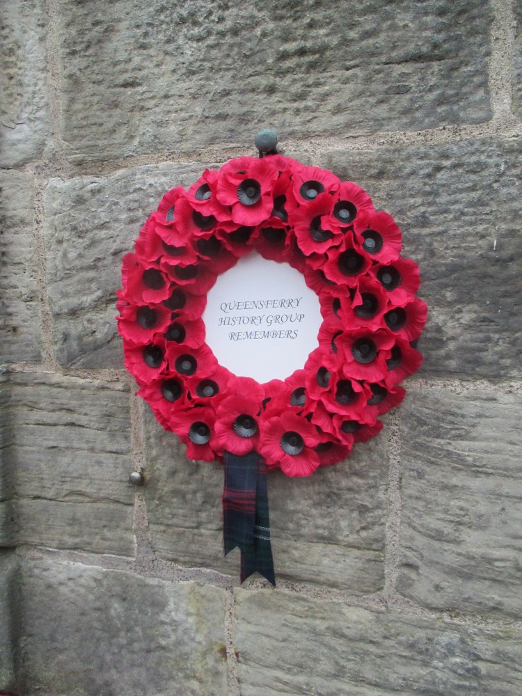 Once again, members of Queensferry History Group gathered to participate in the Armistice Parade led by the armed services and uniformed youth groups, on Sunday, 14th November, along Queensferry High Street, to lay their poppy wreath amongst the 19 wreaths laid that day. Beneath the War Memorial at Rosebery Hall.